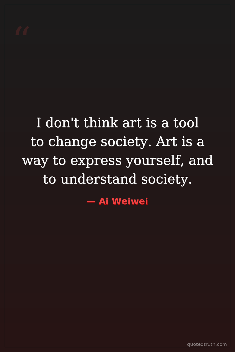 I don't think art is a tool to change society. Art is a way to express yourself, and to understand society.