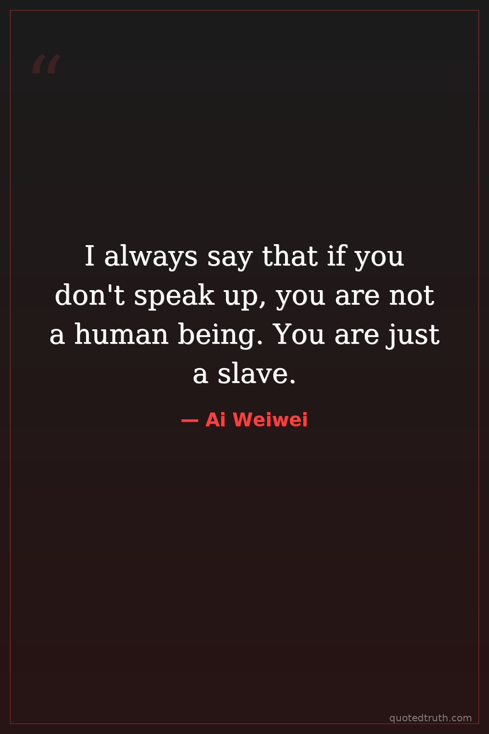 I always say that if you don't speak up, you are not a human being. You are just a slave.