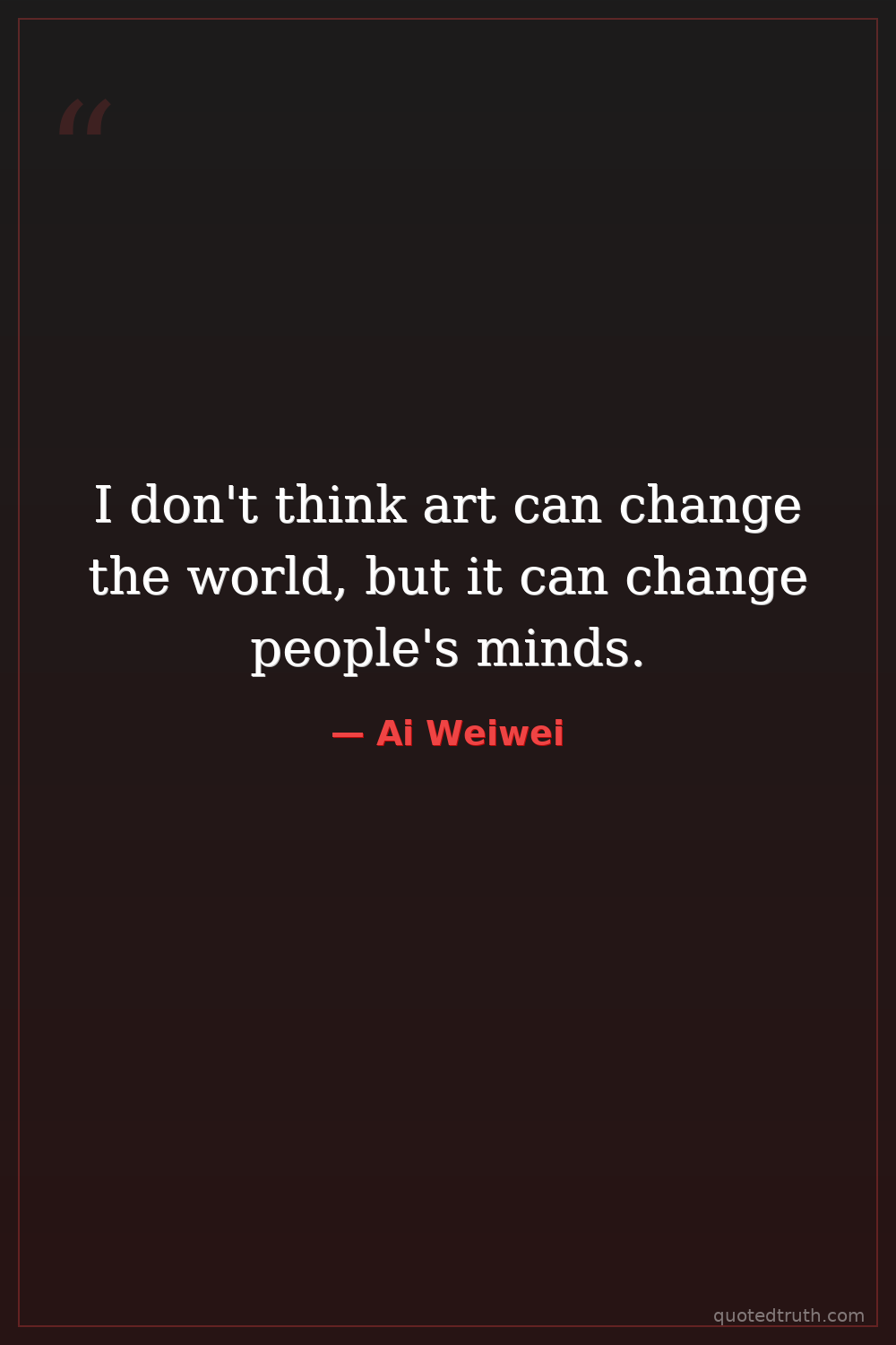 I don't think art can change the world, but it can change people's minds.