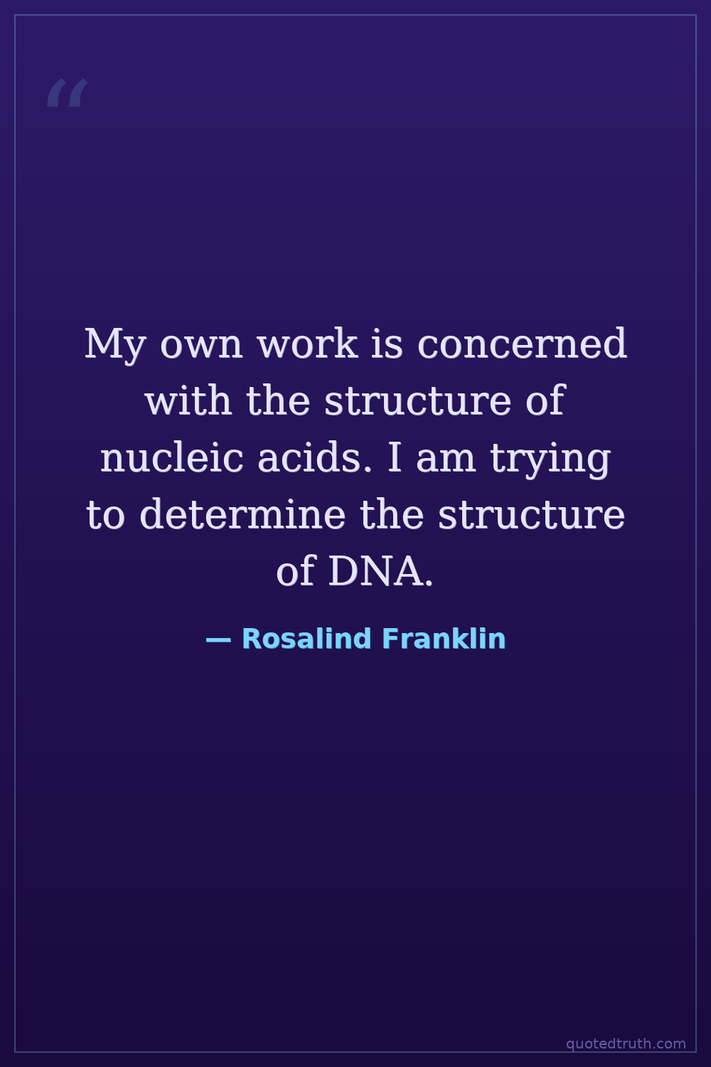 My own work is concerned with the structure of nucleic acids. I am trying to determine the structure of DNA.