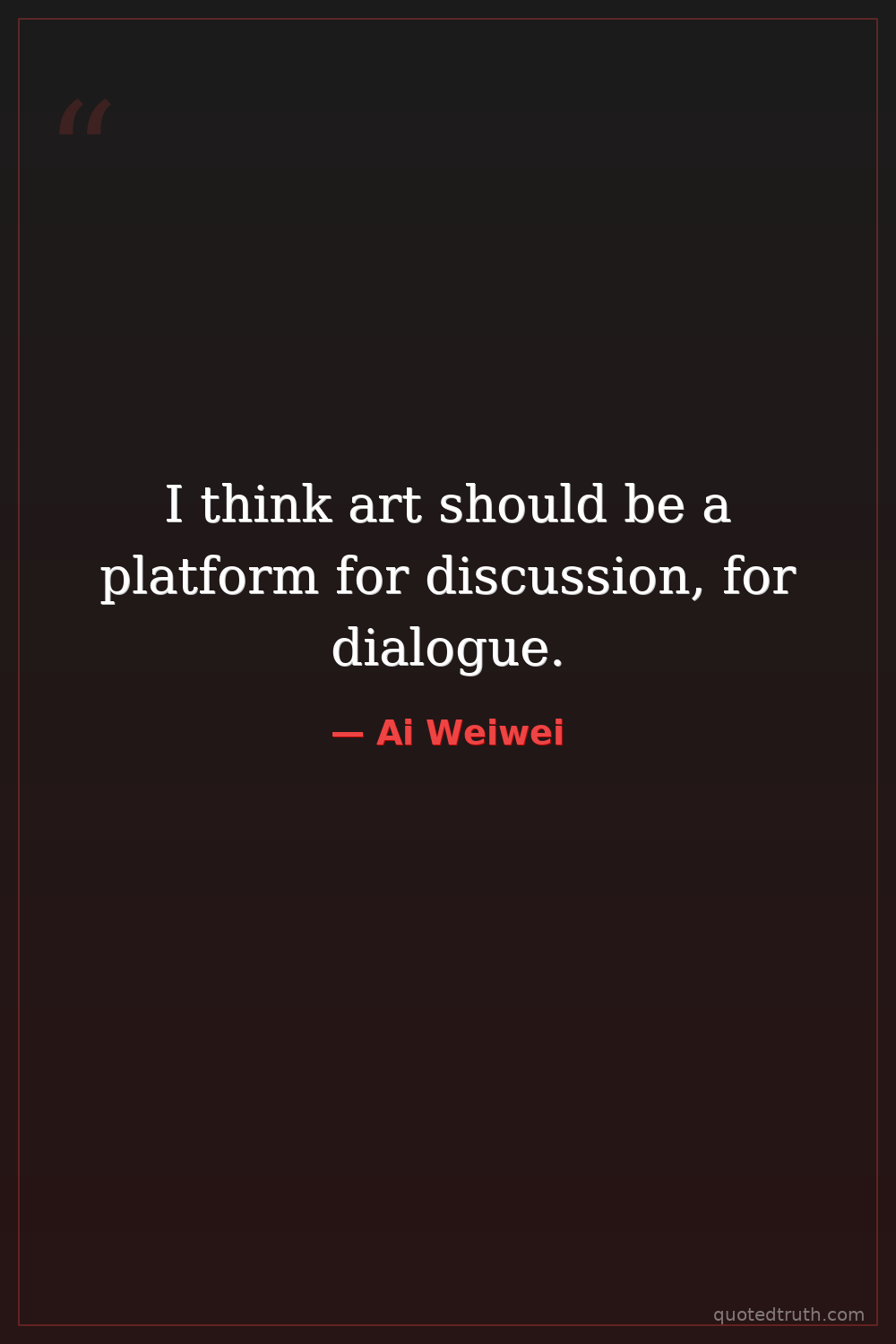 I think art should be a platform for discussion, for dialogue.