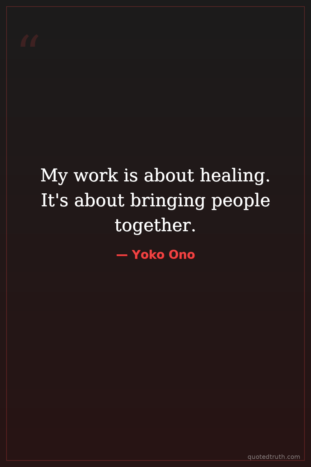 My work is about healing. It's about bringing people together.