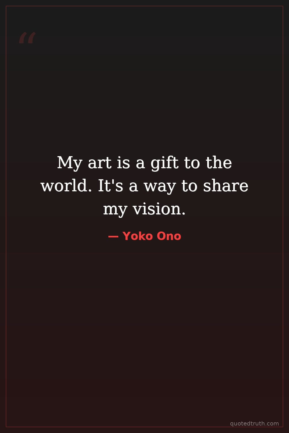 My art is a gift to the world. It's a way to share my vision.