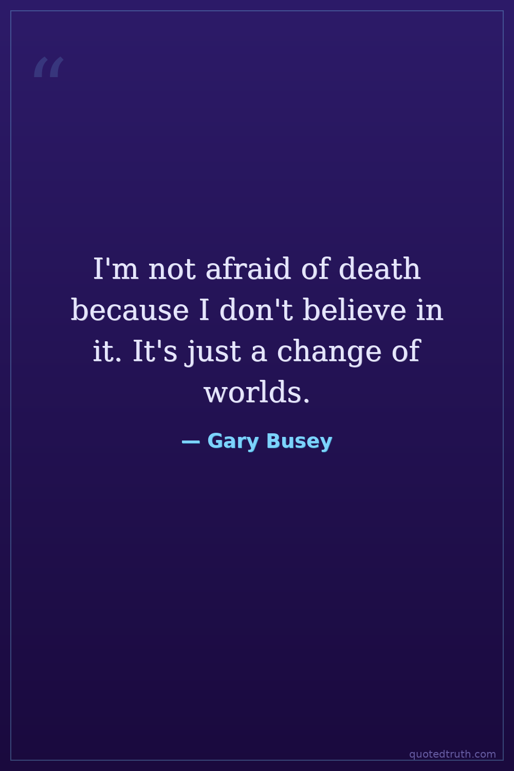 I'm not afraid of death because I don't believe in it. It's just a change of worlds.