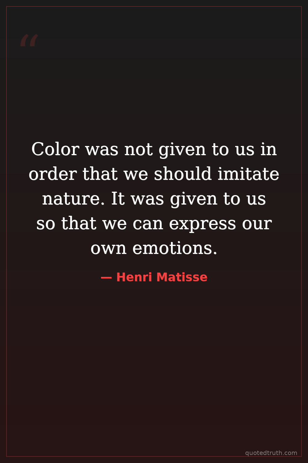 Color was not given to us in order that we should imitate nature. It was given to us so that we can express our own emotions.