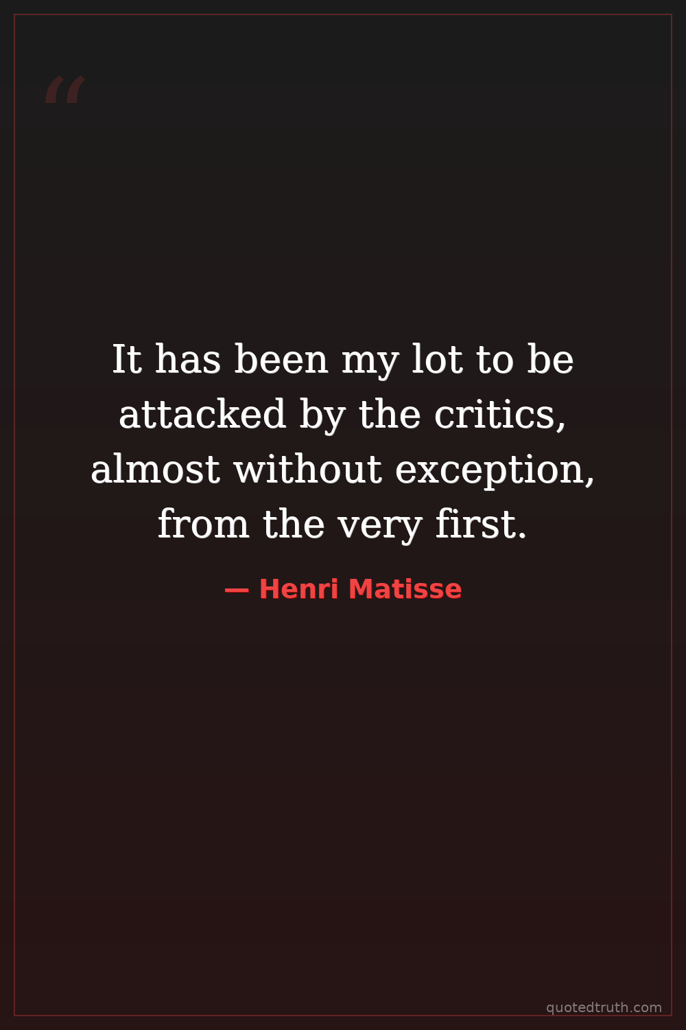 It has been my lot to be attacked by the critics, almost without exception, from the very first.