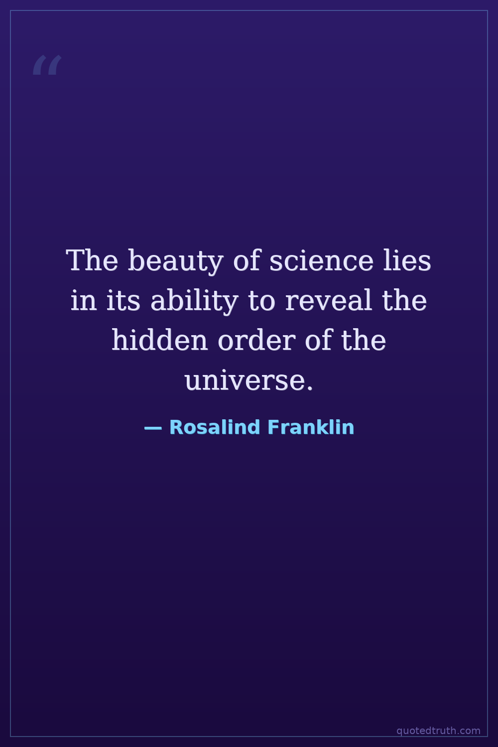 The beauty of science lies in its ability to reveal the hidden order of the universe.
