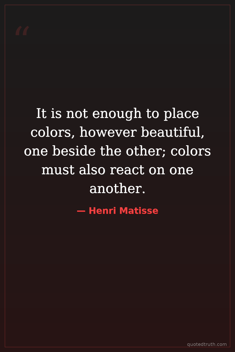 Humorous"It is not enough to place colors, however beautiful, one beside the other; colors must be appropriately placed to enhance each other."