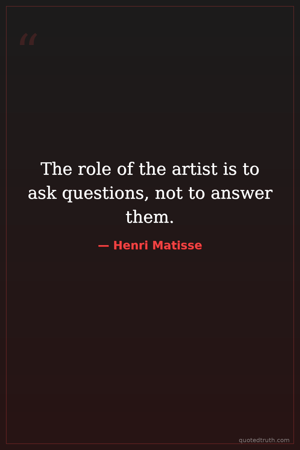 The role of the artist is to ask questions, not to answer them.