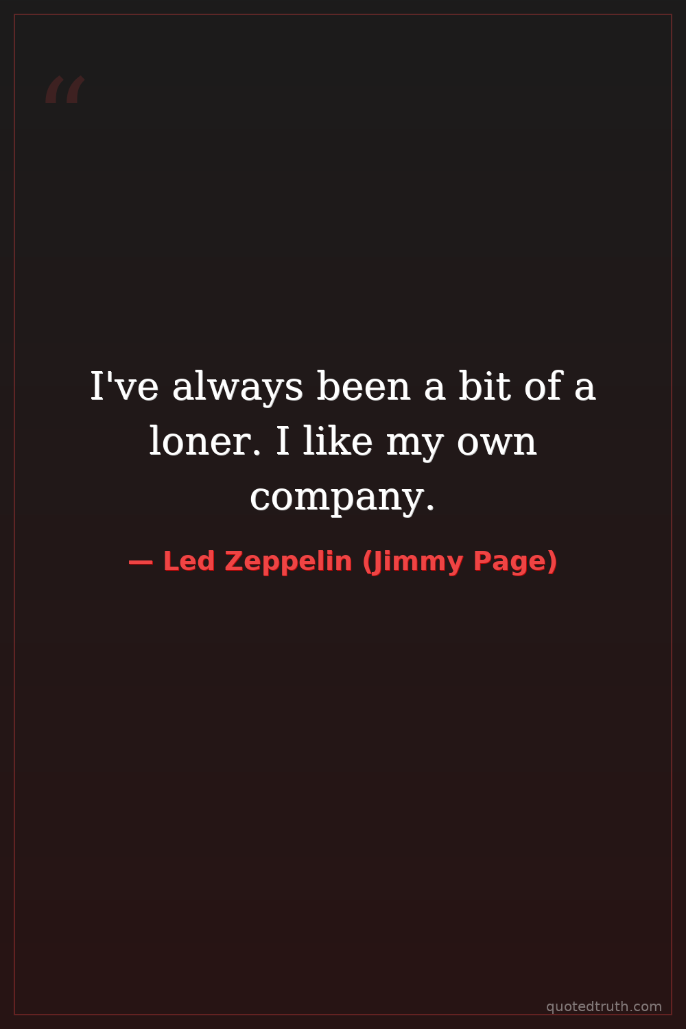 I've always been a bit of a loner. I like my own company.
