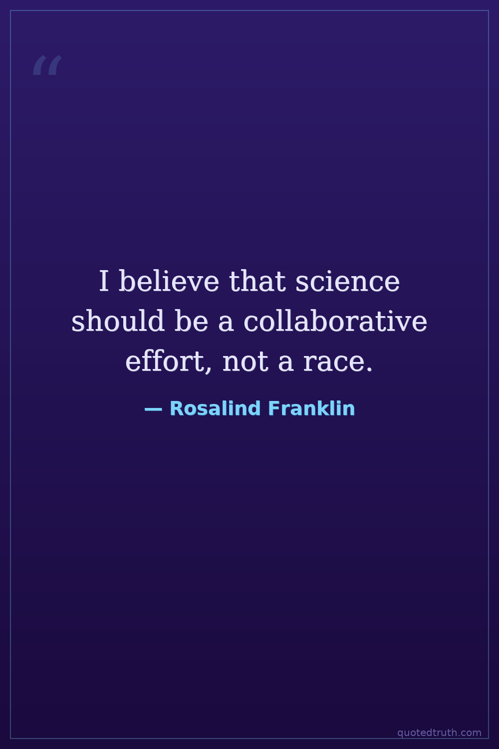 I believe that science should be a collaborative effort, not a race.