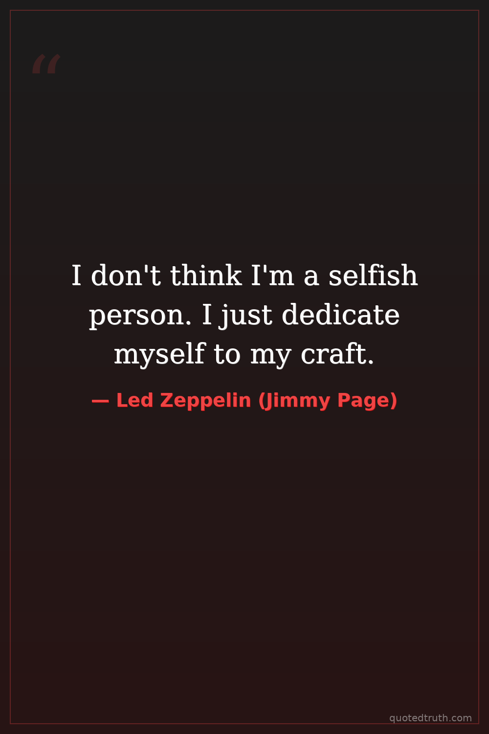 I don't think I'm a selfish person. I just dedicate myself to my craft.