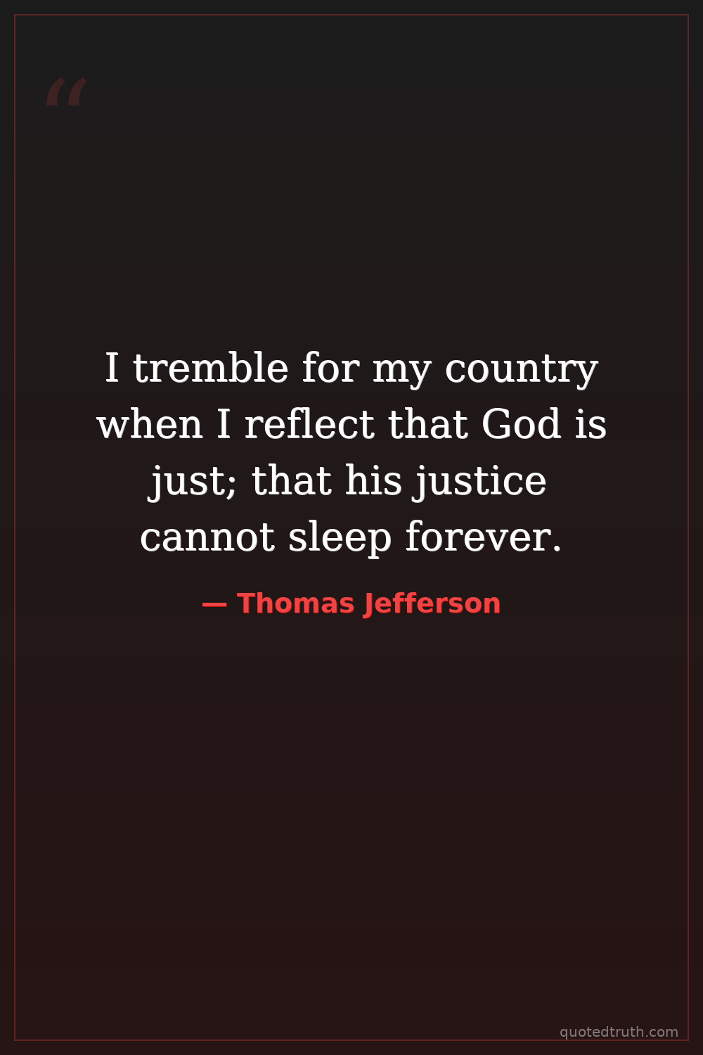 I tremble for my country when I reflect that God is just; that his justice cannot sleep forever.