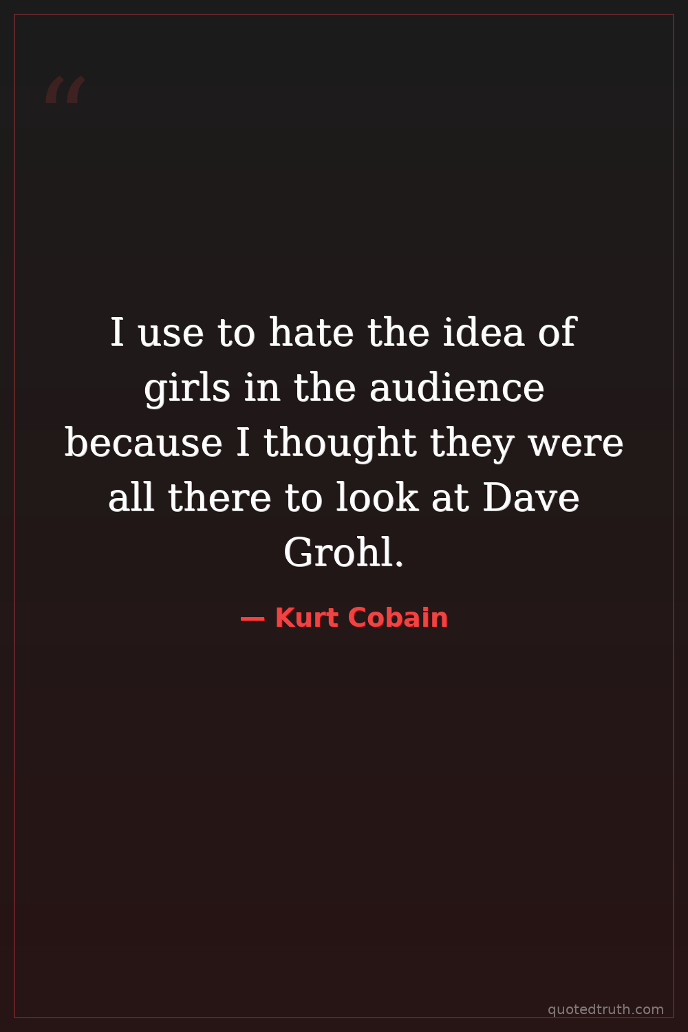 I use to hate the idea of girls in the audience because I thought they were all there to look at Dave Grohl.