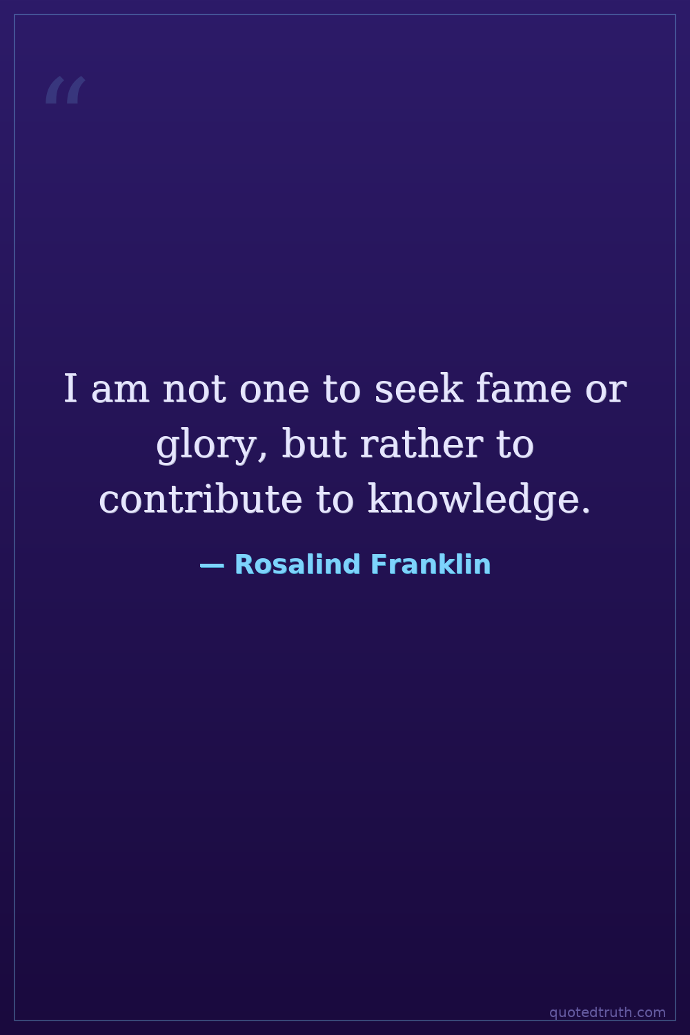 I am not one to seek fame or glory, but rather to contribute to knowledge.