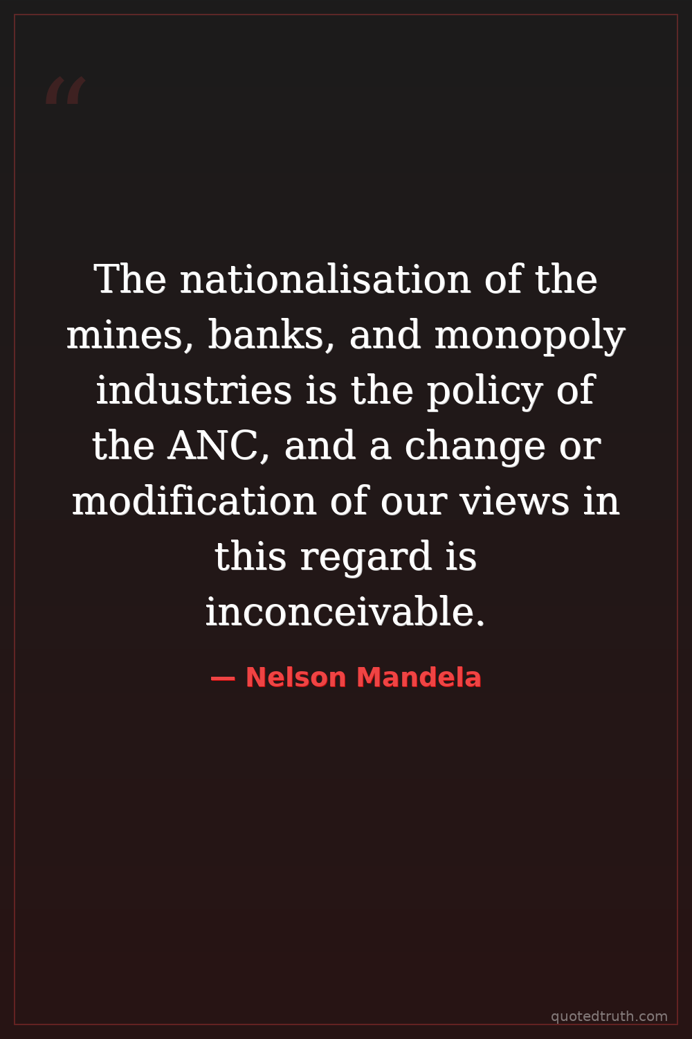 The nationalisation of the mines, banks, and monopoly industries is the policy of the ANC, and a change or modification of our views in this regard is inconceivable.