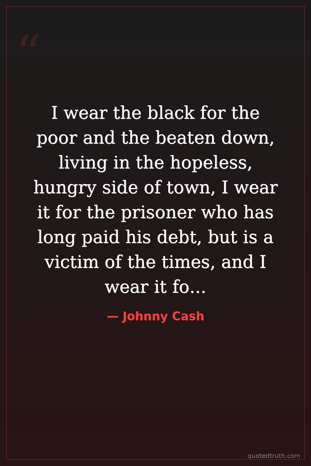 I wear the black for the poor and the beaten down, living in the hopeless, hungry side of town, I wear it for the prisoner who has long paid his debt, but is a victim of the times, and I wear it for the sick and lonely old.