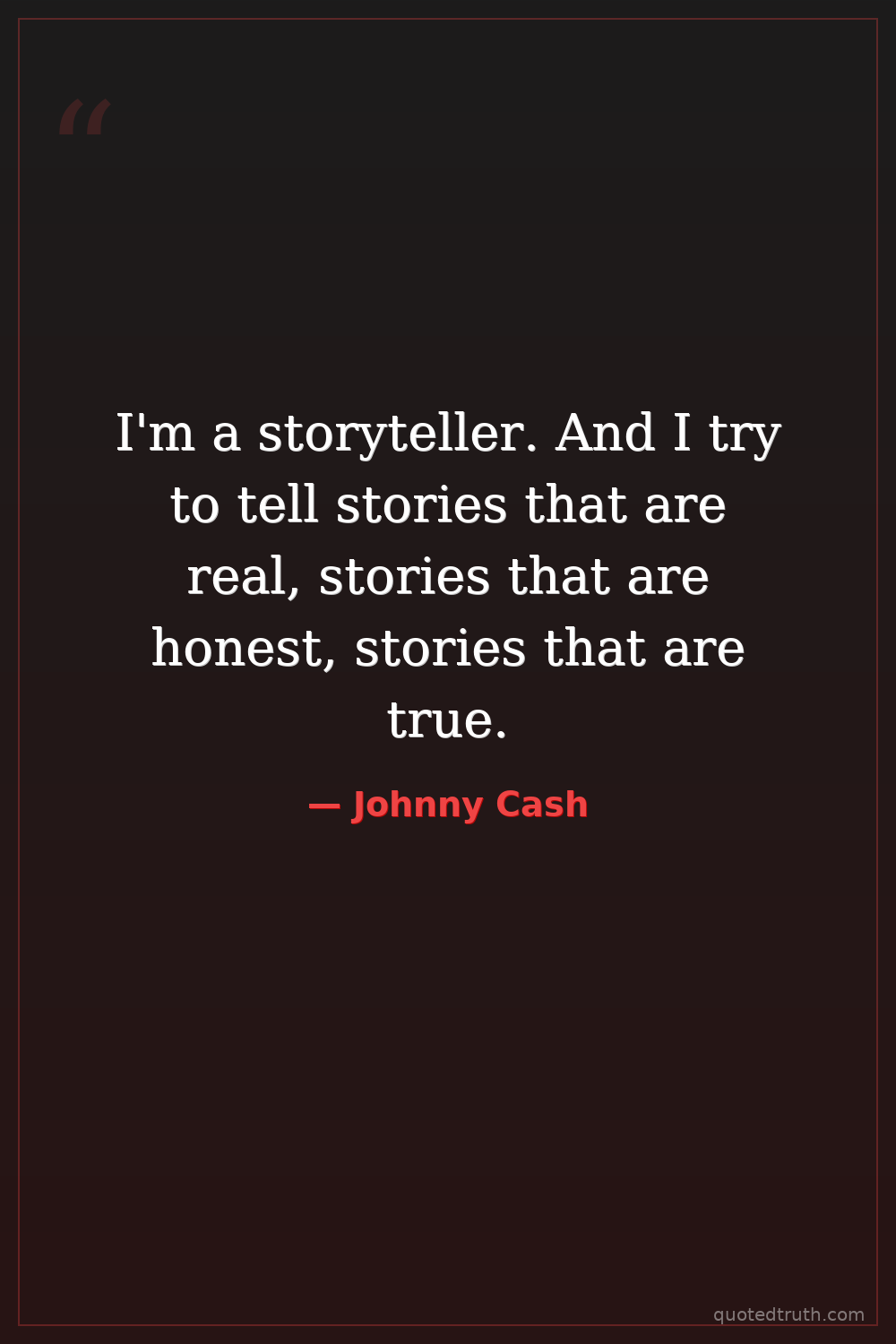 I'm a storyteller. And I try to tell stories that are real, stories that are honest, stories that are true.