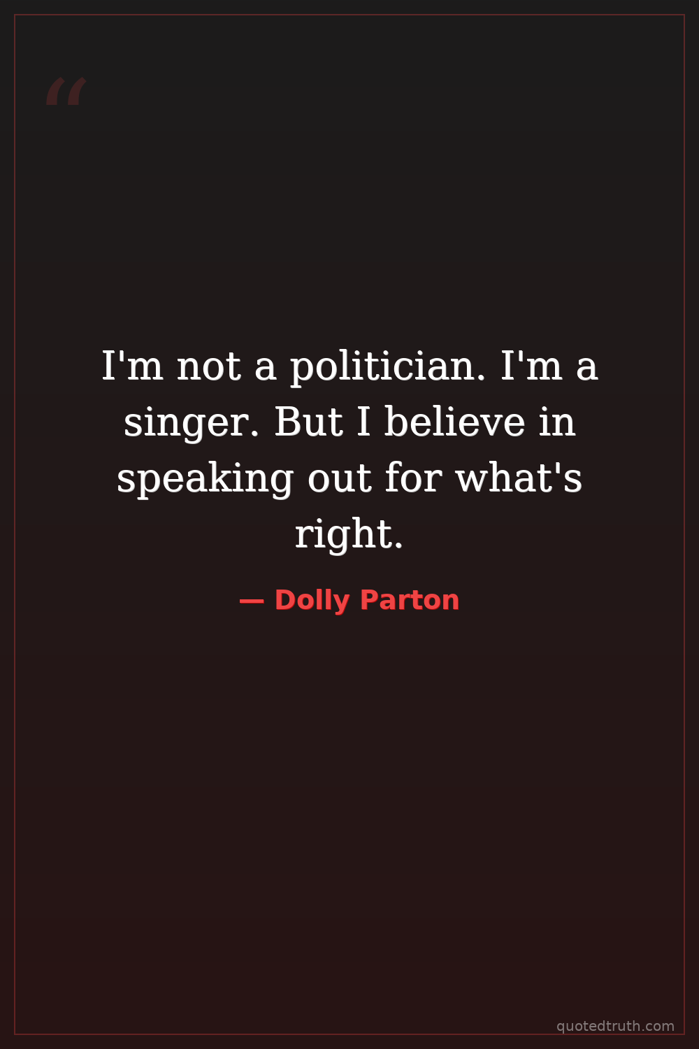 I'm not a politician. I'm a singer. But I believe in speaking out for what's right.