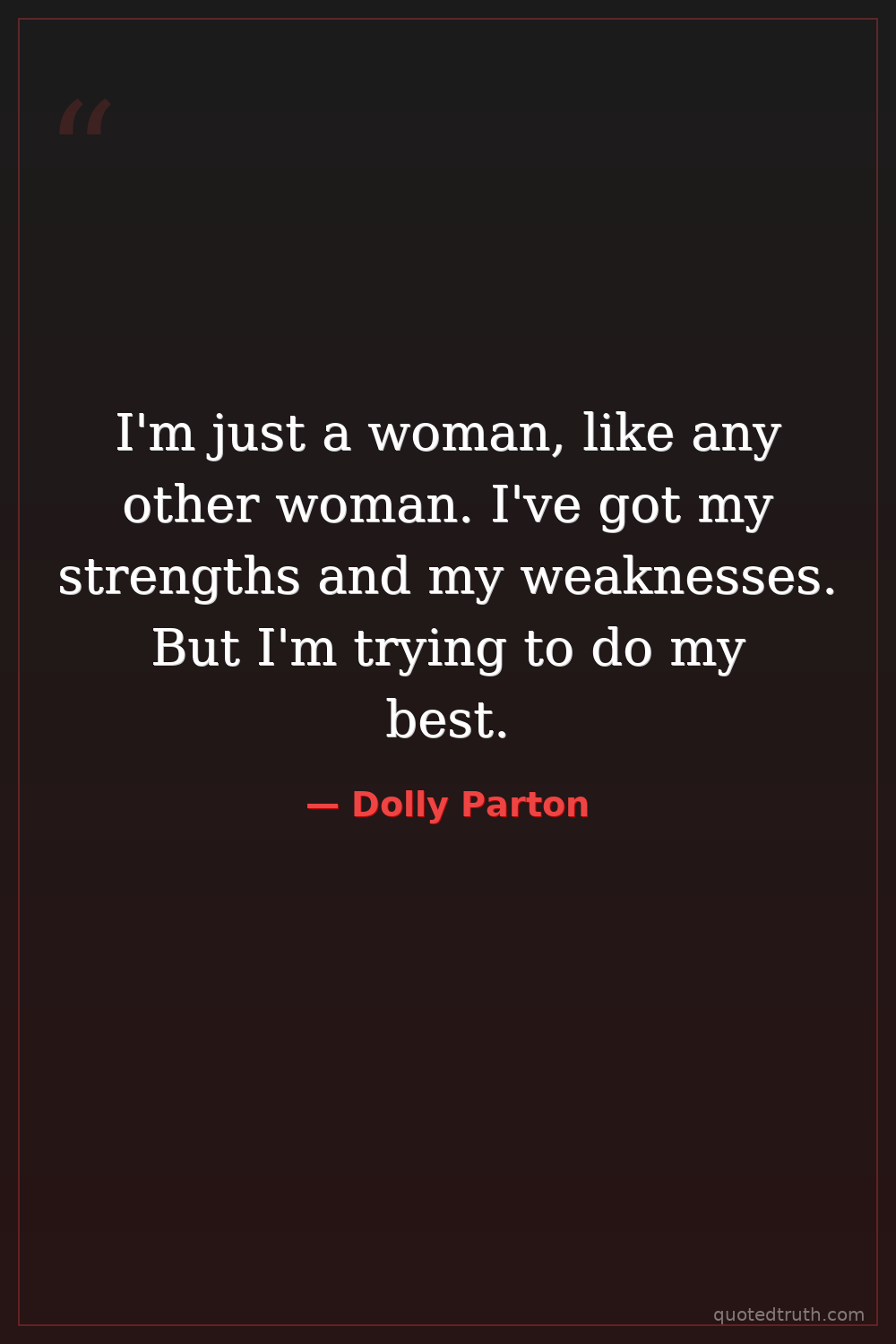 I'm just a woman, like any other woman. I've got my strengths and my weaknesses. But I'm trying to do my best.