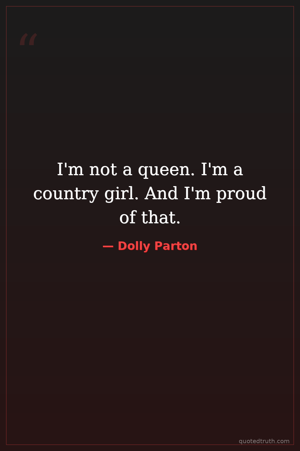 I'm not a queen. I'm a country girl. And I'm proud of that.