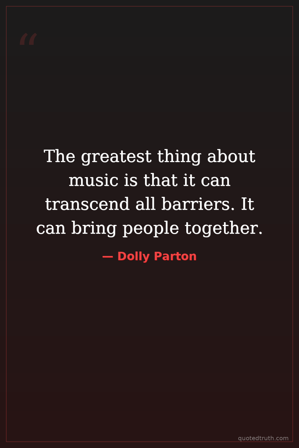 The greatest thing about music is that it can transcend all barriers. It can bring people together.