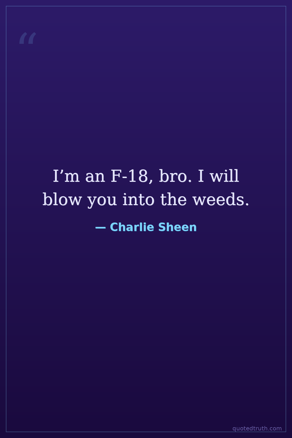 I’m an F-18, bro. I will blow you into the weeds.