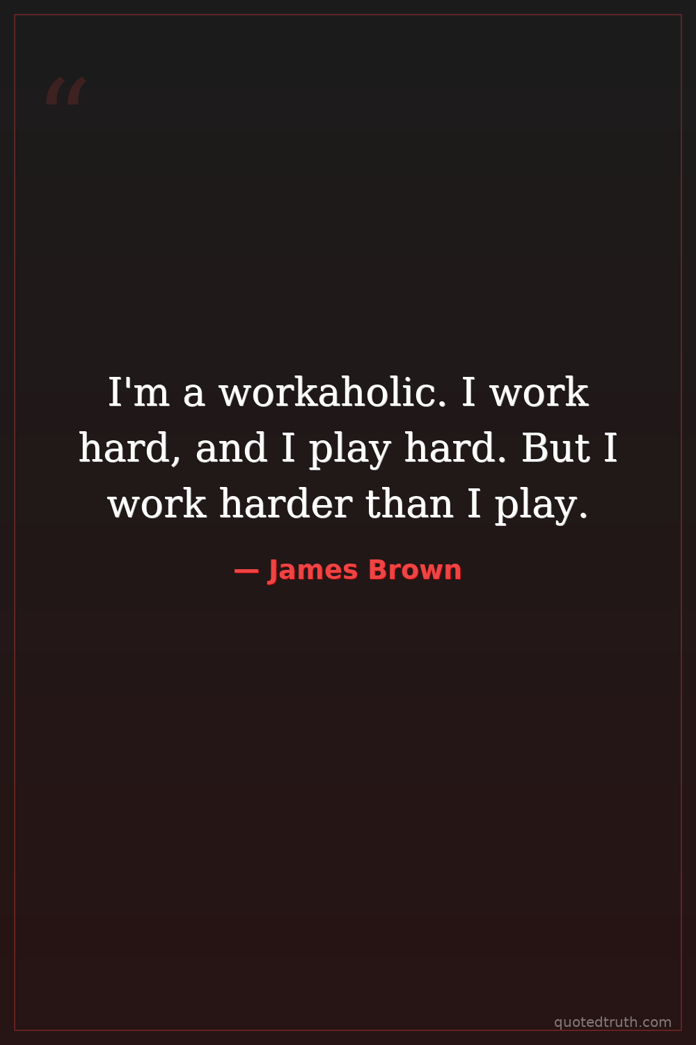 I'm a workaholic. I work hard, and I play hard. But I work harder than I play.