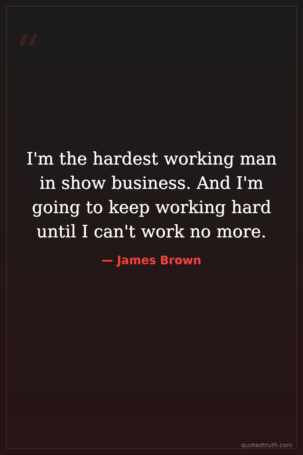 I'm the hardest working man in show business. And I'm going to keep working hard until I can't work no more.