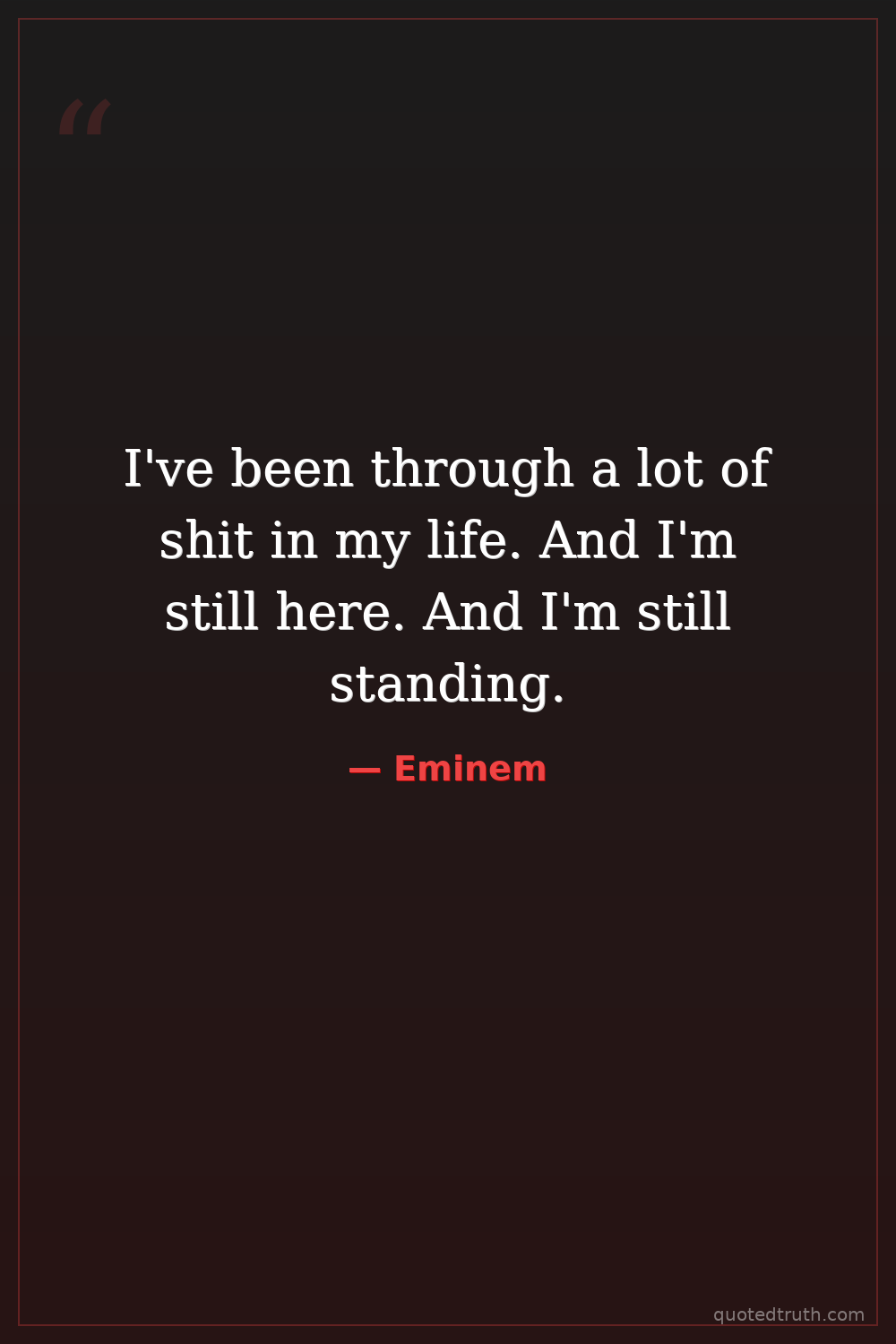 I've been through a lot of shit in my life. And I'm still here. And I'm still standing.