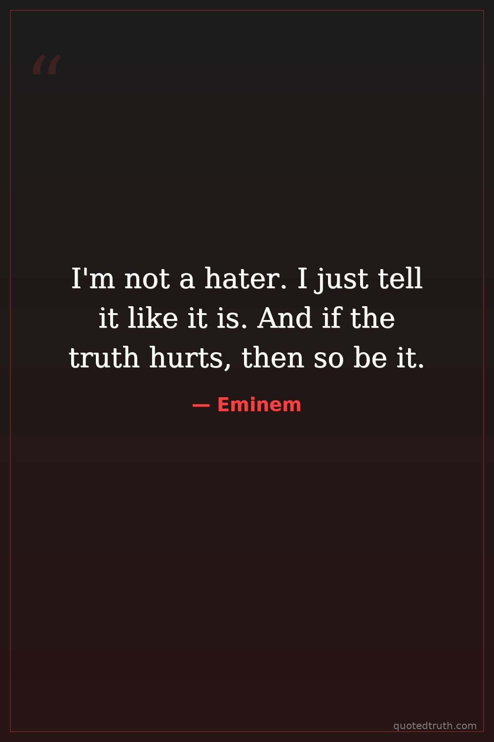 I'm not a hater. I just tell it like it is. And if the truth hurts, then so be it.
