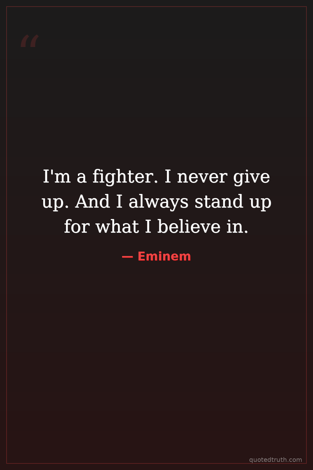 I'm a fighter. I never give up. And I always stand up for what I believe in.