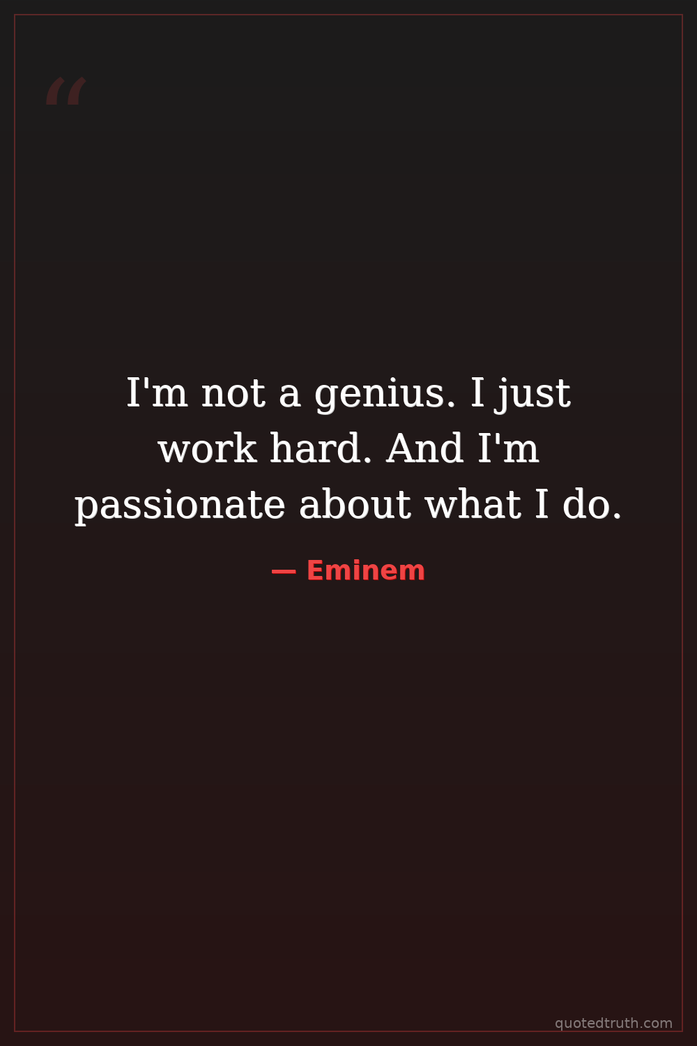 I'm not a genius. I just work hard. And I'm passionate about what I do.