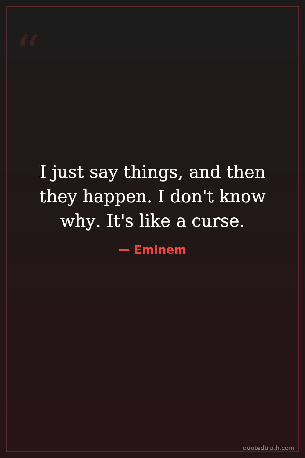 I just say things, and then they happen. I don't know why. It's like a curse.