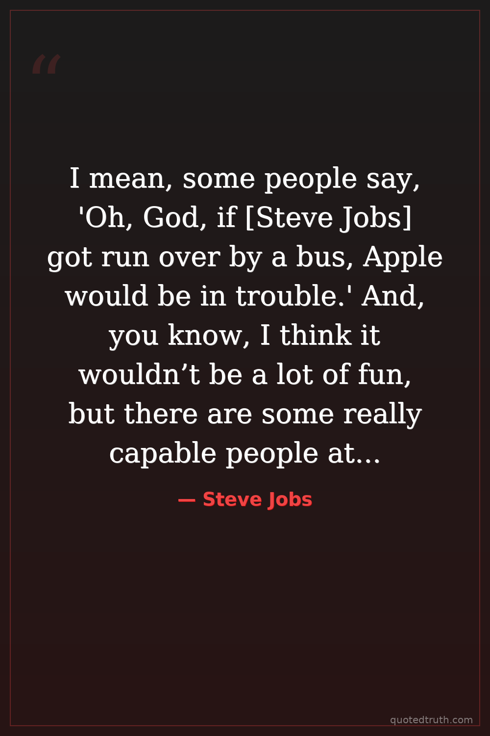 I mean, some people say, 'Oh, God, if [Steve Jobs] got run over by a bus, Apple would be in trouble.' And, you know, I think it wouldn’t be a lot of fun, but there are some really capable people at Apple. My job is to make the whole executive team good enough to be successful without me.