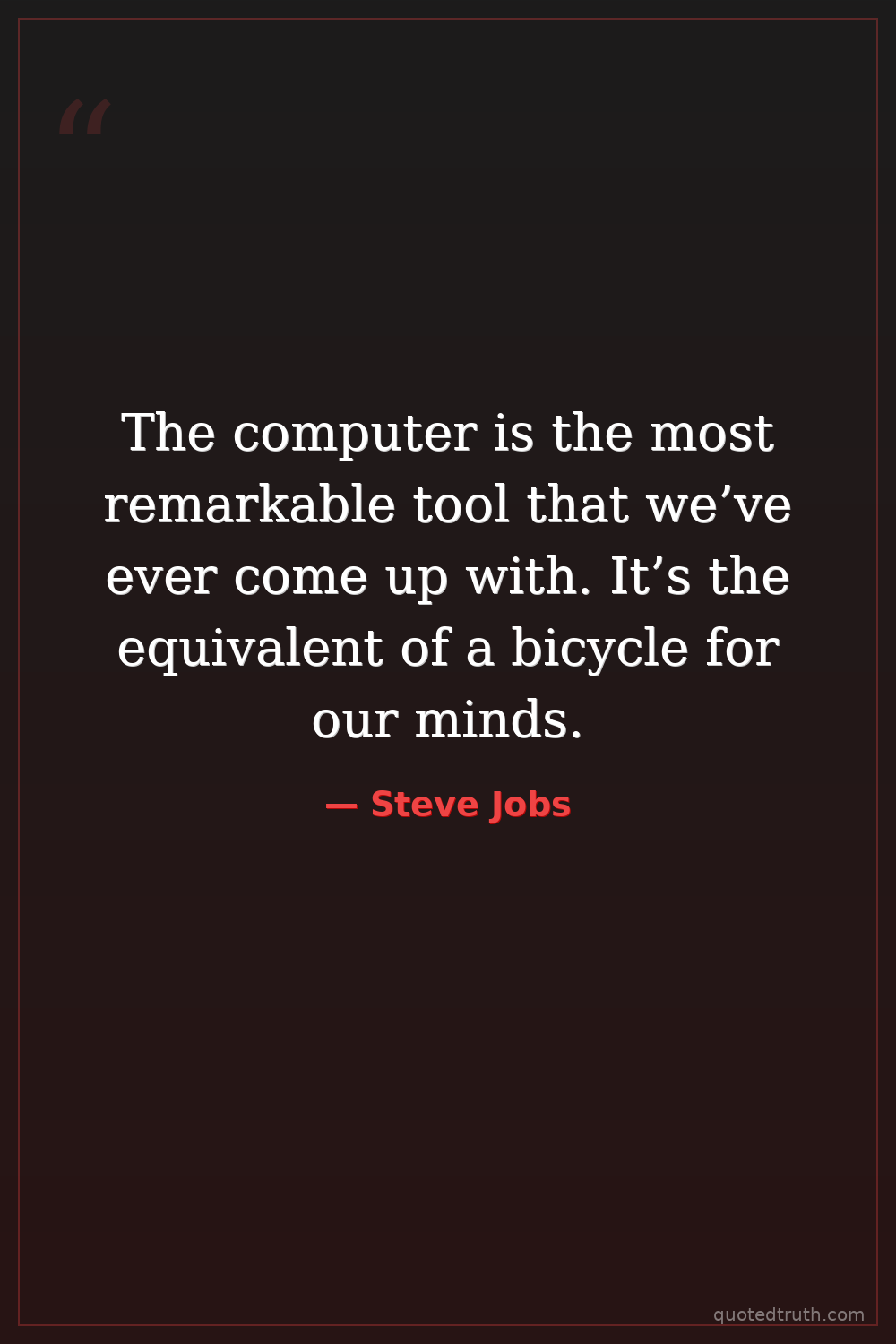 The computer is the most remarkable tool that we’ve ever come up with. It’s the equivalent of a bicycle for our minds.