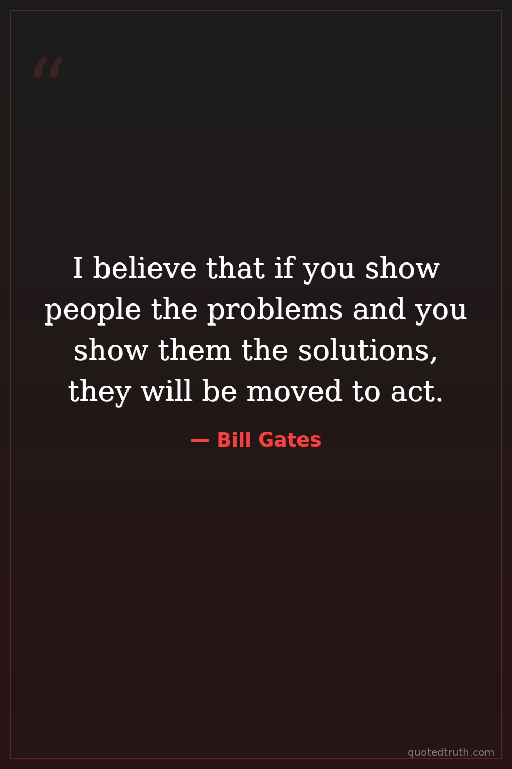 I believe that if you show people the problems and you show them the solutions, they will be moved to act.
