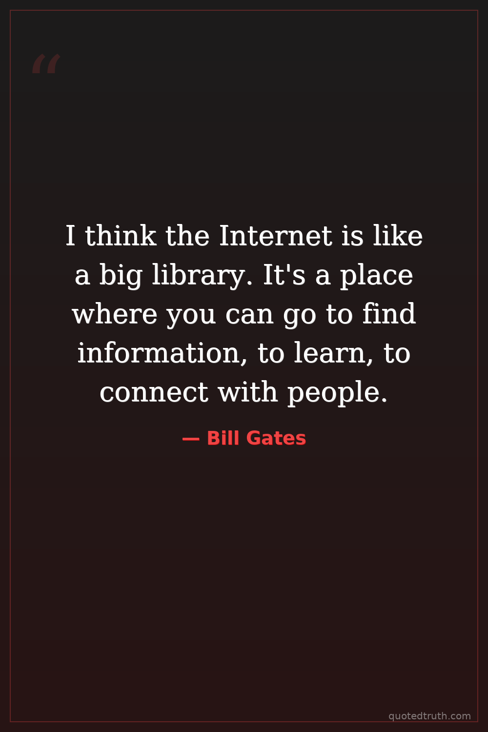 I think the Internet is like a big library. It's a place where you can go to find information, to learn, to connect with people.
