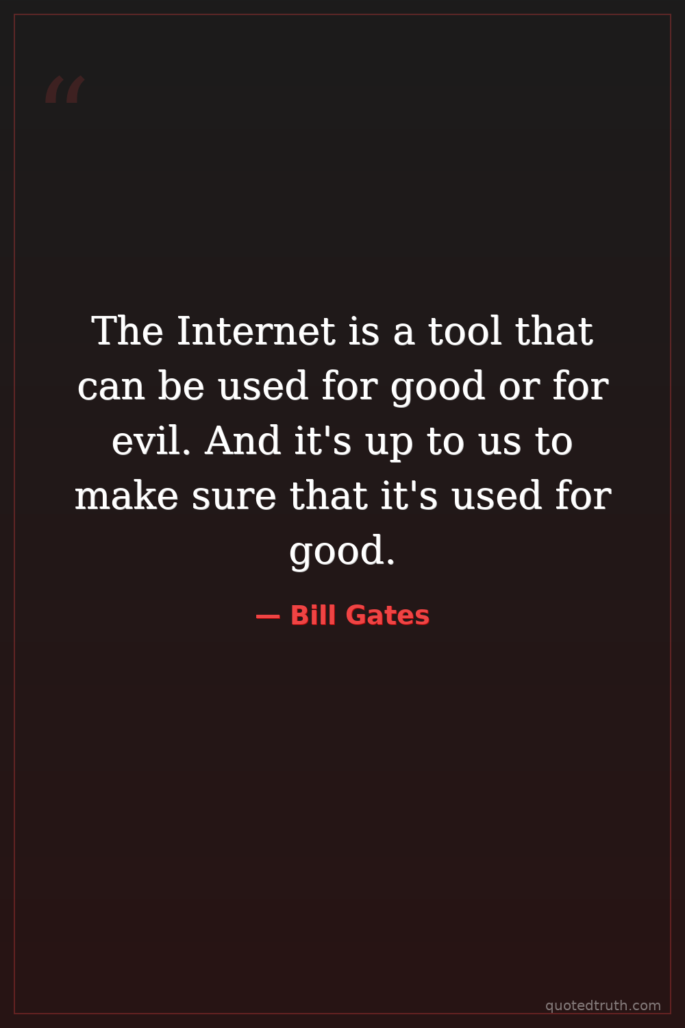 The Internet is a tool that can be used for good or for evil. And it's up to us to make sure that it's used for good.