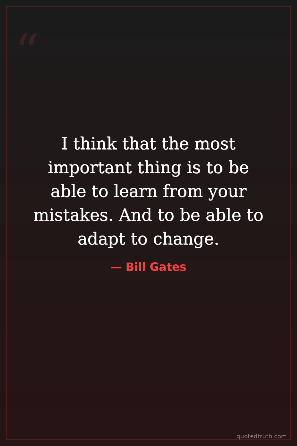 I think that the most important thing is to be able to learn from your mistakes. And to be able to adapt to change.