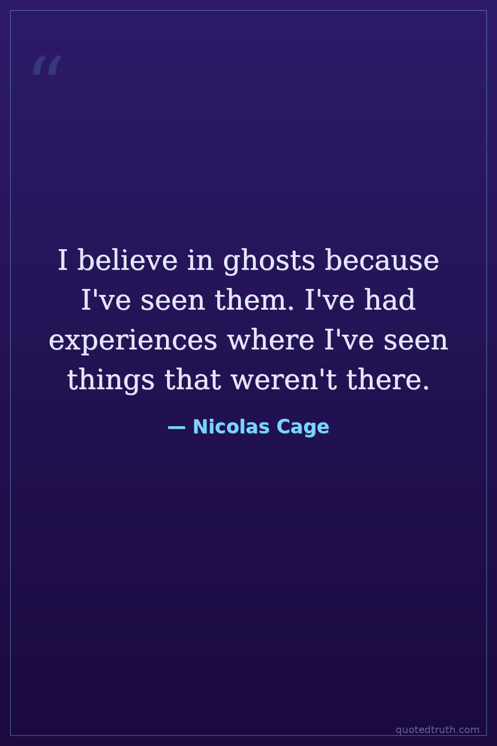 I believe in ghosts because I've seen them. I've had experiences where I've seen things that weren't there.