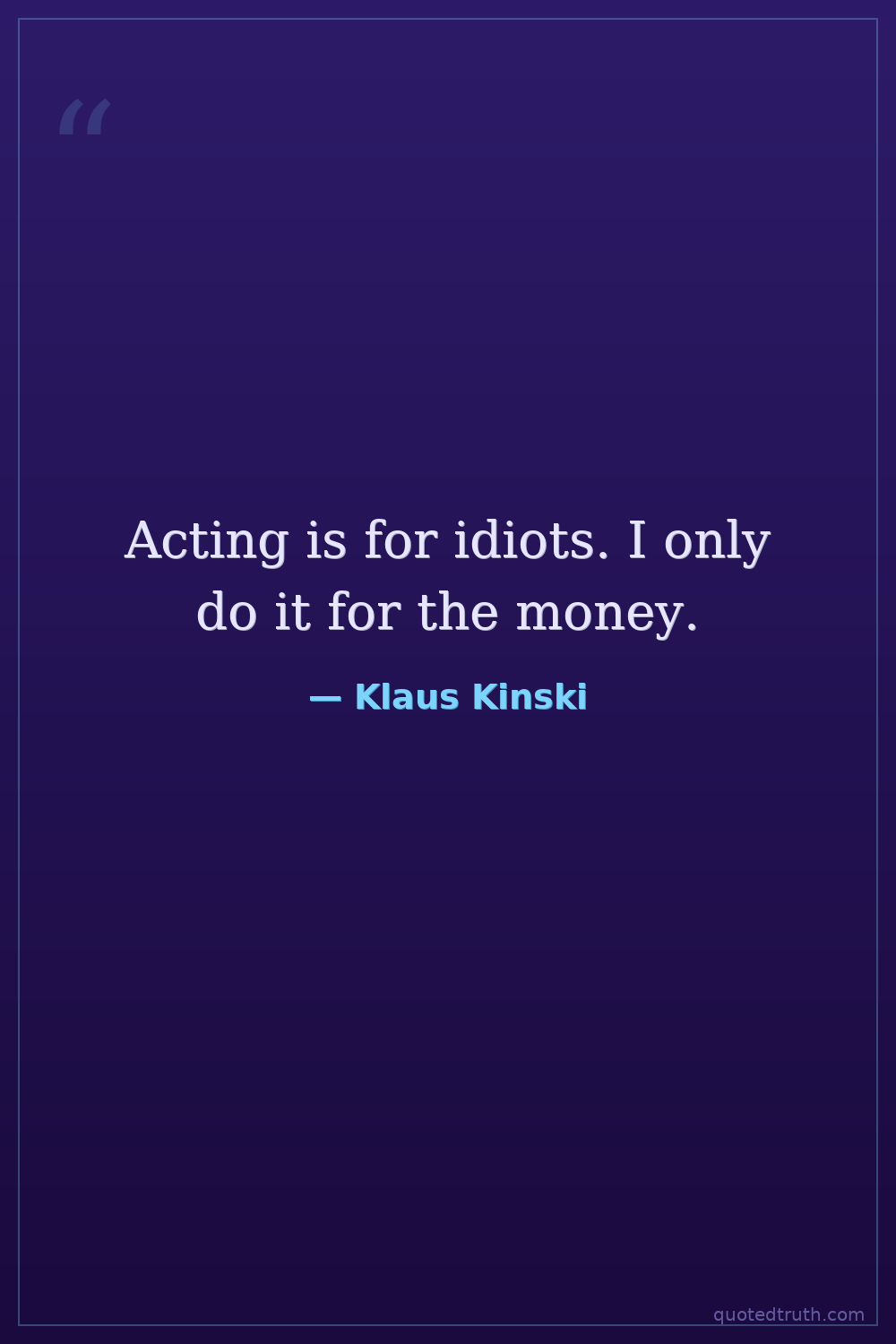 Acting is for idiots. I only do it for the money.