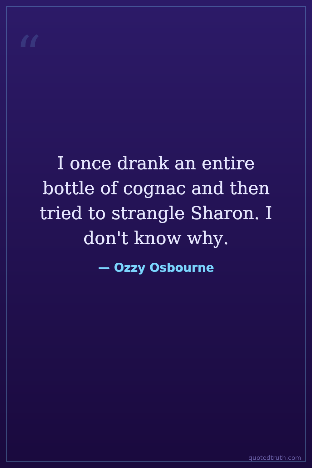 I once drank an entire bottle of cognac and then tried to strangle Sharon. I don't know why.