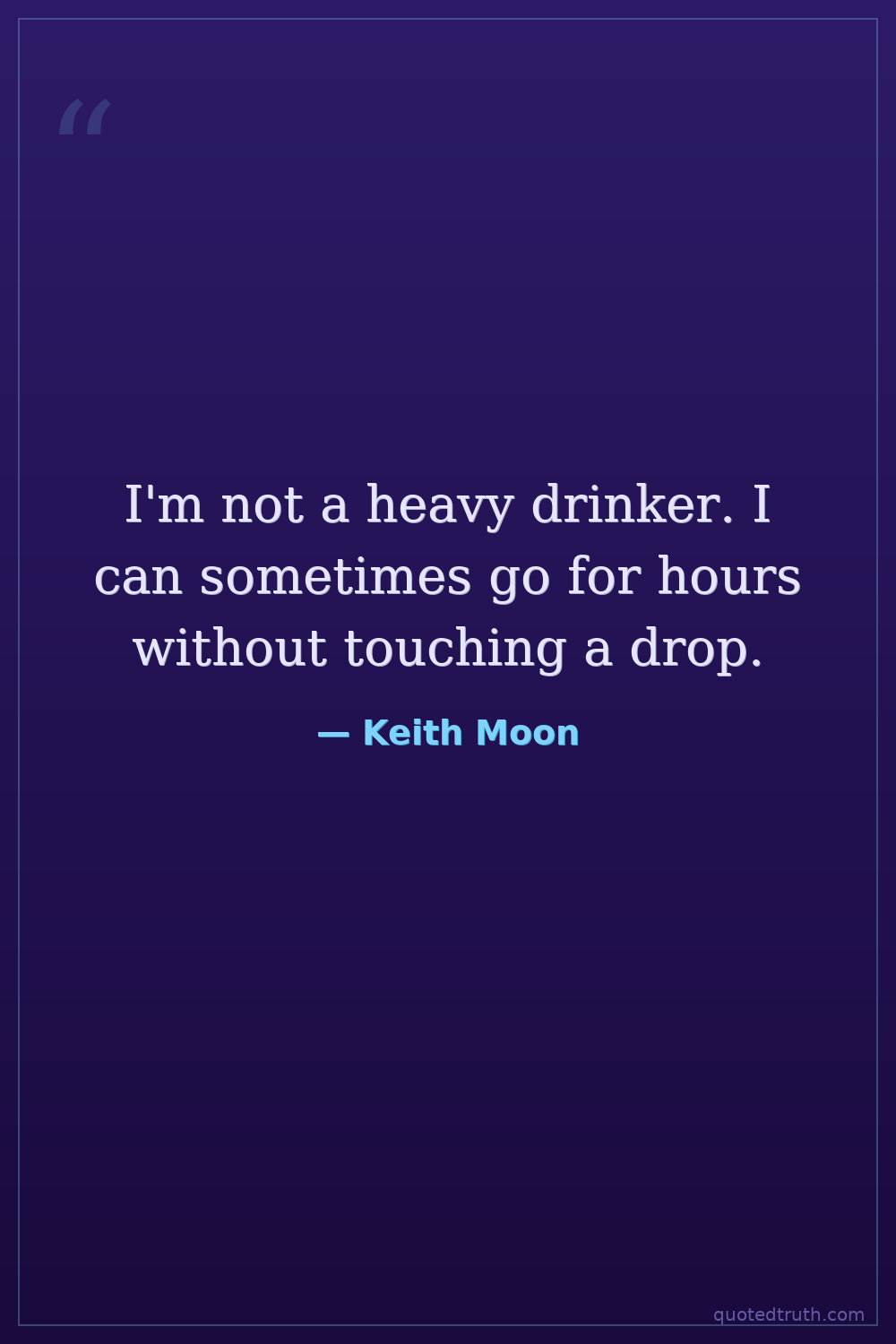 I'm not a heavy drinker. I can sometimes go for hours without touching a drop.