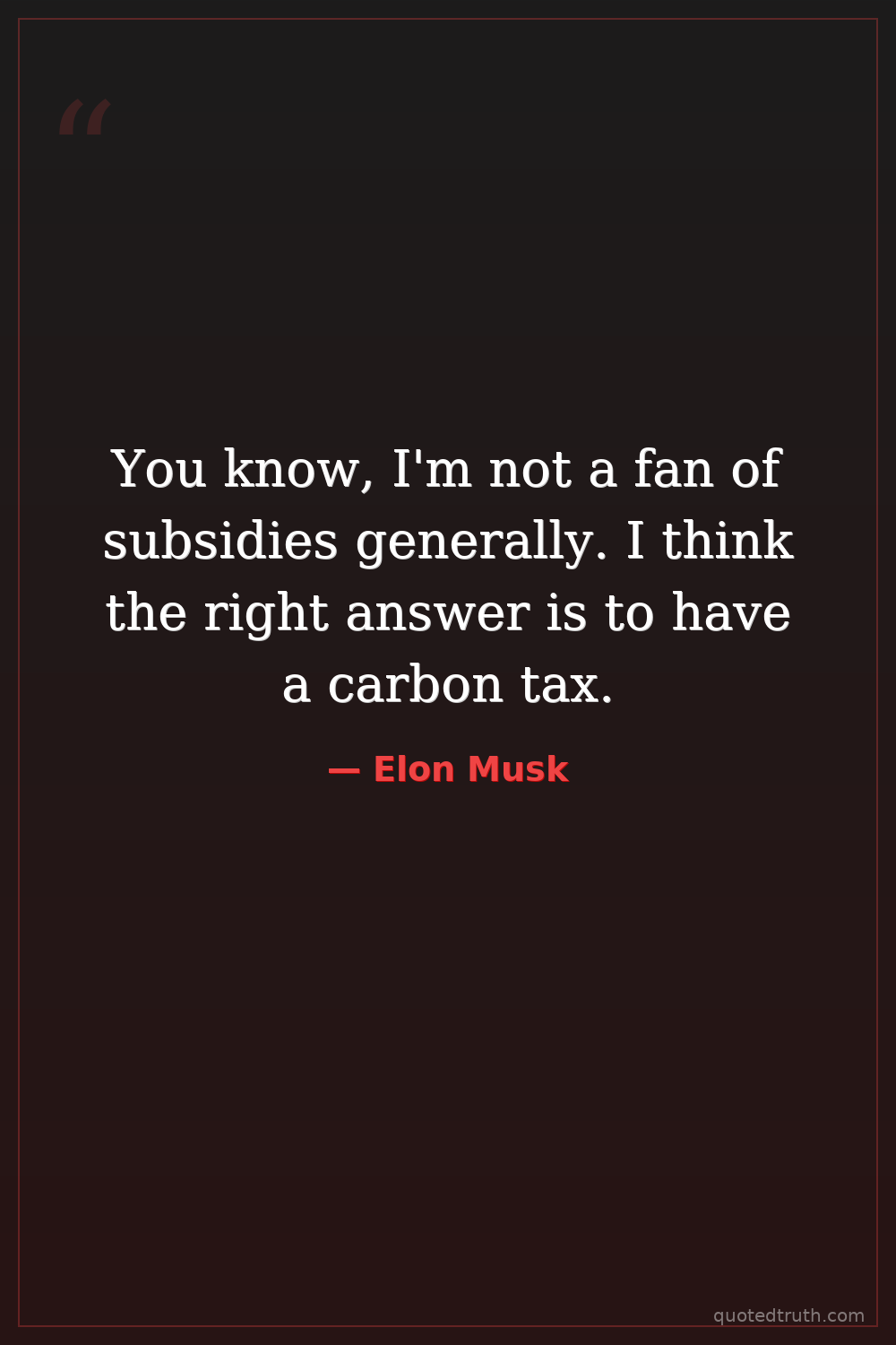 You know, I'm not a fan of subsidies generally. I think the right answer is to have a carbon tax.