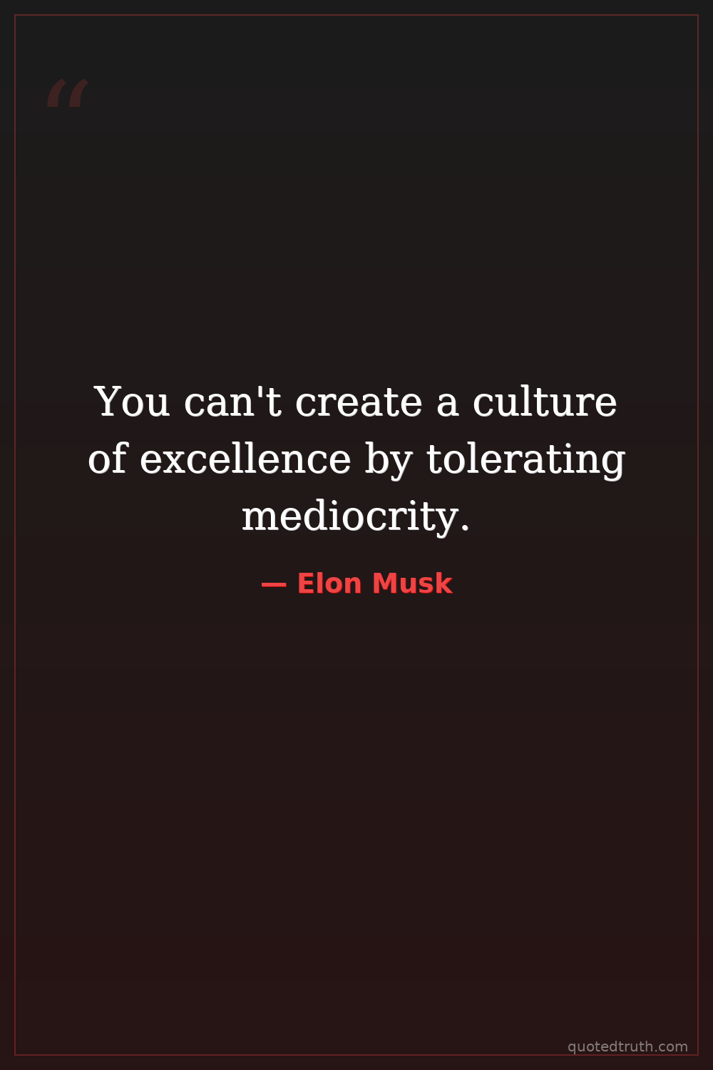 You can't create a culture of excellence by tolerating mediocrity.