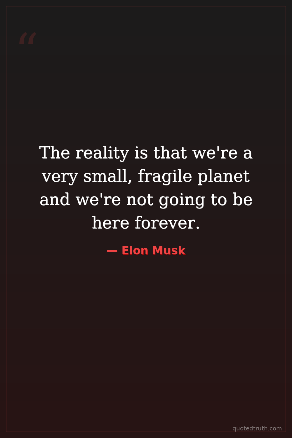 The reality is that we're a very small, fragile planet and we're not going to be here forever.