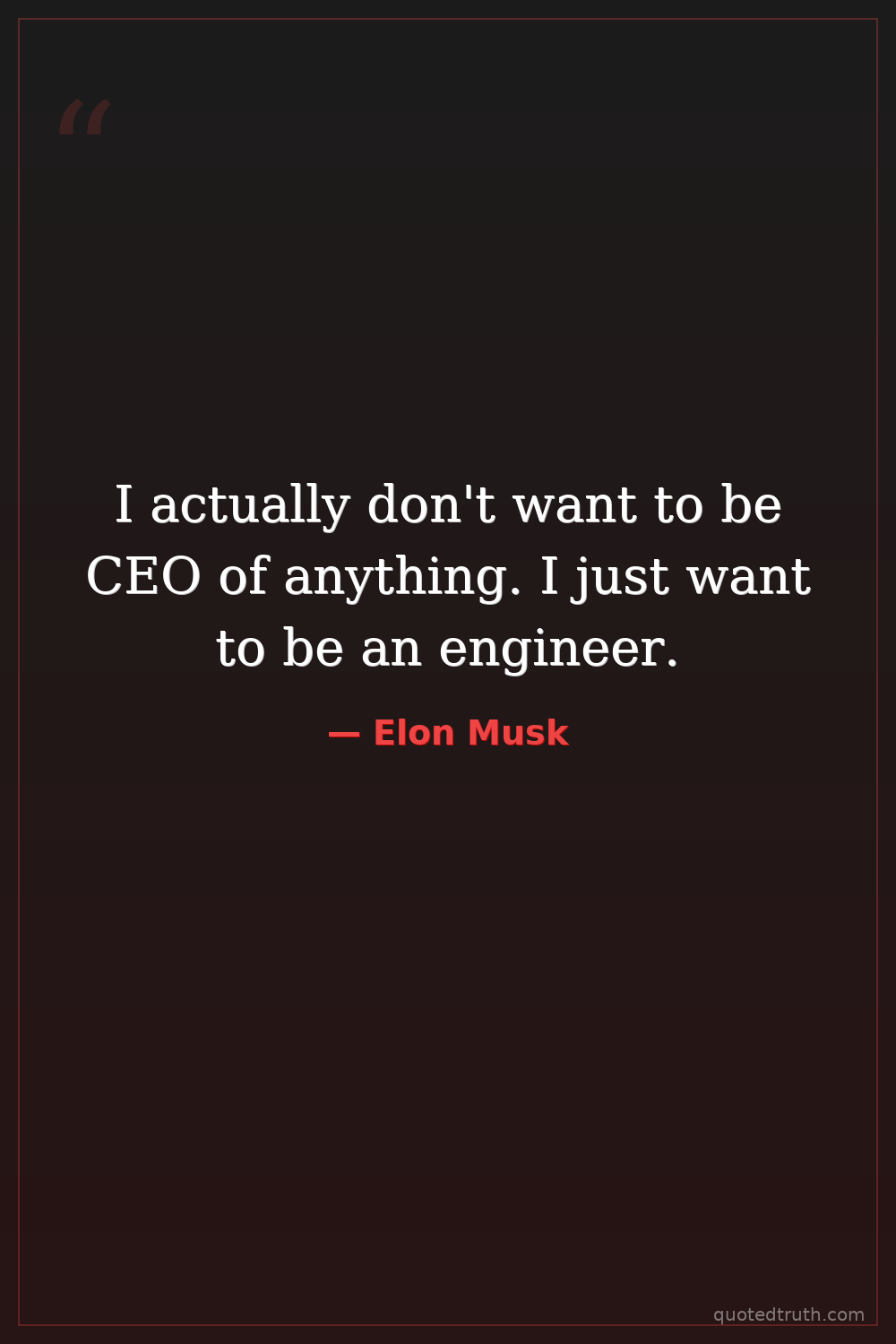 I actually don't want to be CEO of anything. I just want to be an engineer.