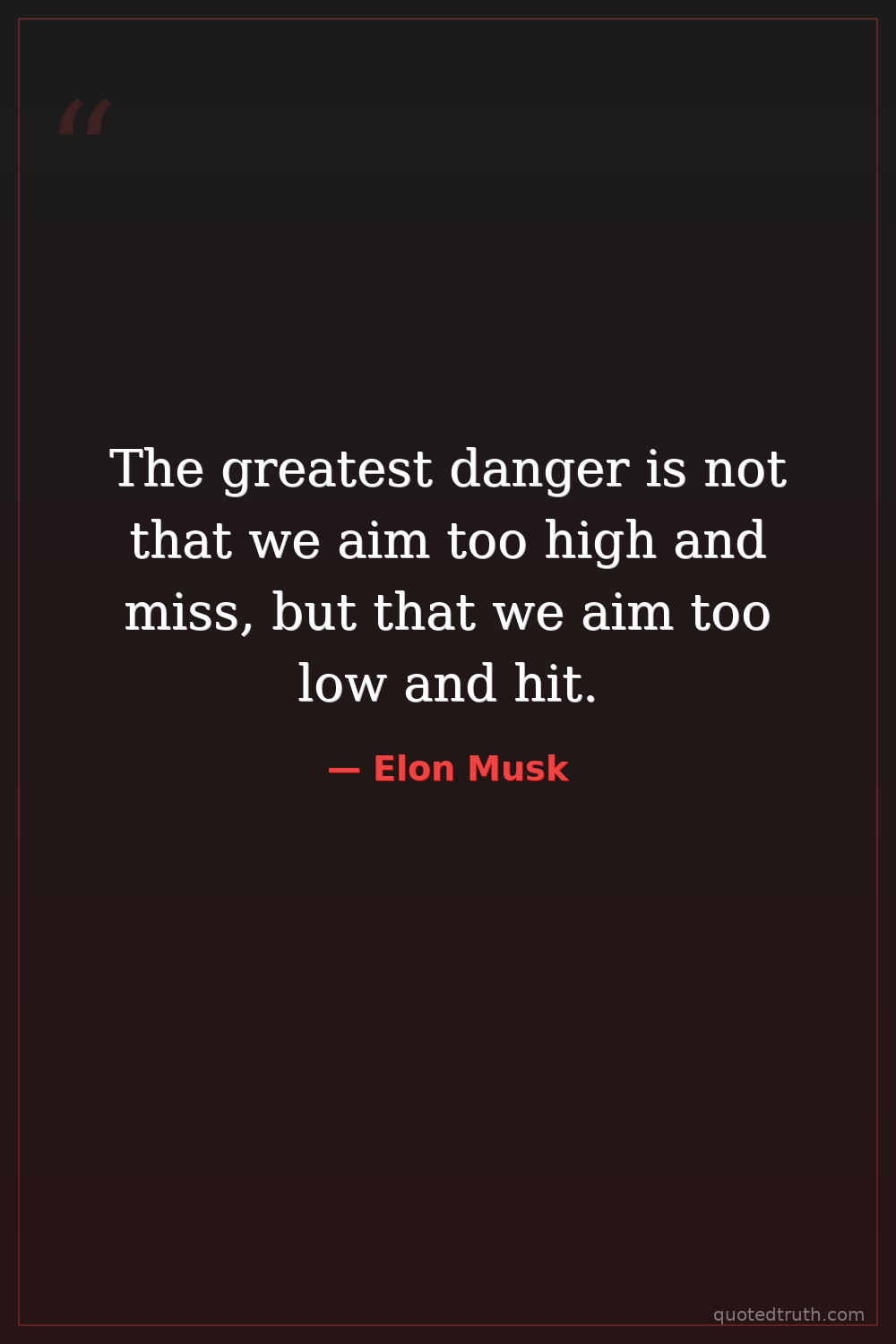 The greatest danger is not that we aim too high and miss, but that we aim too low and hit.