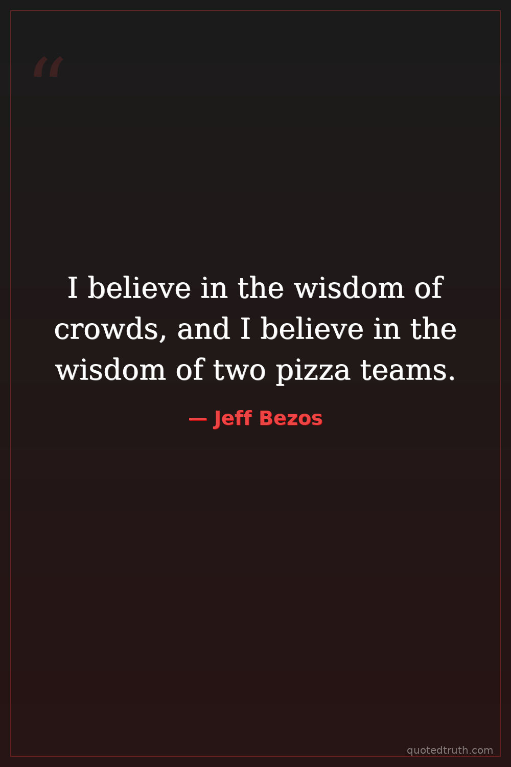 I believe in the wisdom of crowds, and I believe in the wisdom of two pizza teams.